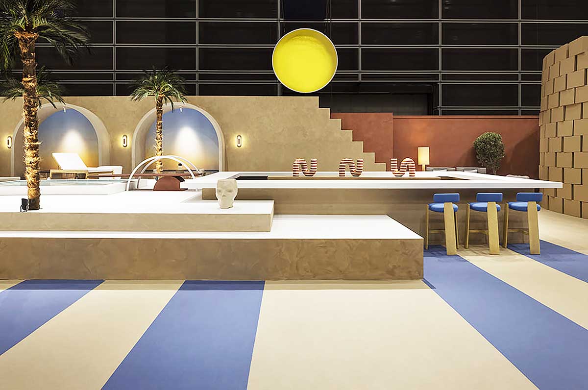 «Mediterráneo: luz, tierra y vida» es el lema del Hotel Hábitat, un espacio amplio en medio del evento que interpreta una posible tendencia de interiorismo para hoteles, según la visión del estudio Ruizvelázquez. El proyecto captura la singular atmósfera de este entorno natural, donde convergen la costa y el paisaje valenciano, generando un ambiente vibrante. El diseño sigue e integra las tendencias emergentes de tecnología y sostenibilidad. Paredes revestidas con pintura de arcilla y materiales reciclados resaltan el compromiso con el medio ambiente, ofrecen experiencias memorables y generan el efecto wow.